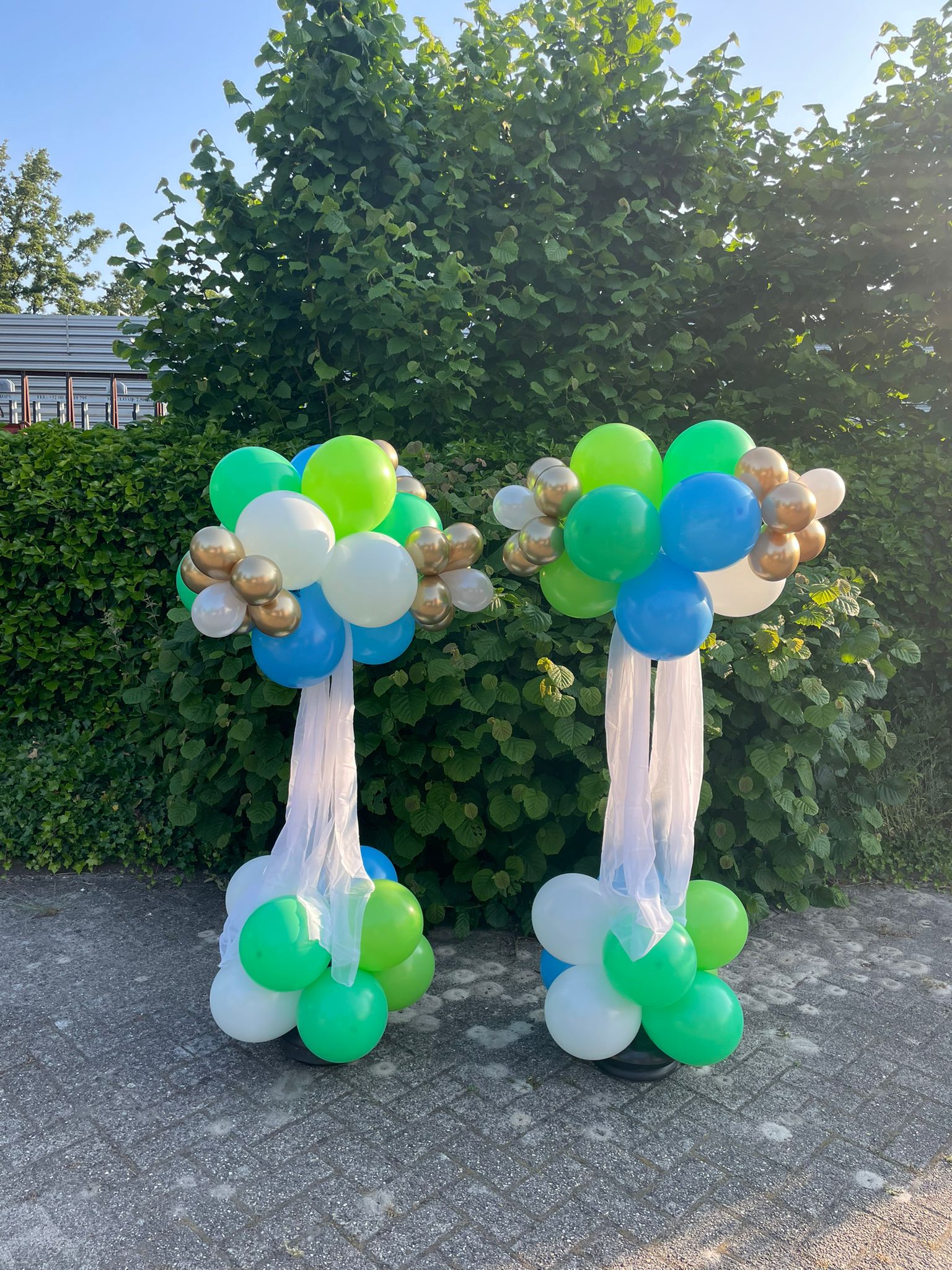Onze ballonnen pilaren zijn standaard ongeveer 2.20 meter hoog en worden standaard met een topballon geleverd.