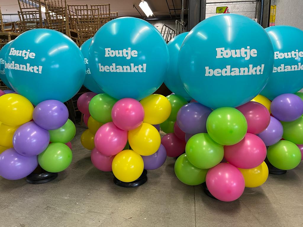 Prijzen van ballonpilaren met topballon beginnen vanaf €40 (€48,40 incl. BTW).
