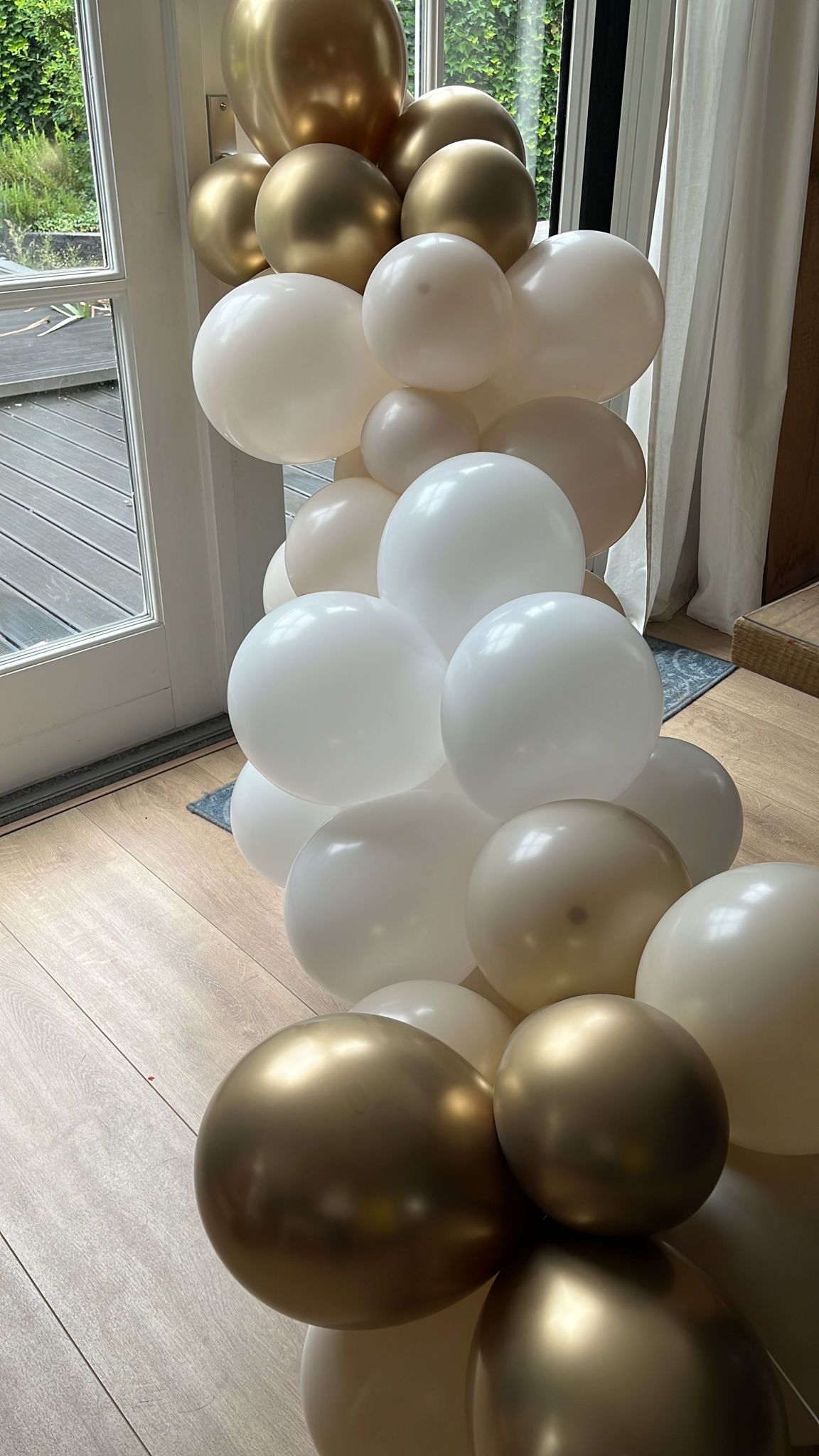 Ballonnenslingers worden op maat gemaakt. De lengte van de slinger kan dus variëren net als de kleuren van de slinger. Naast onze standaard ballonslingers kunnen we ook organic ballonnenslingers maken.