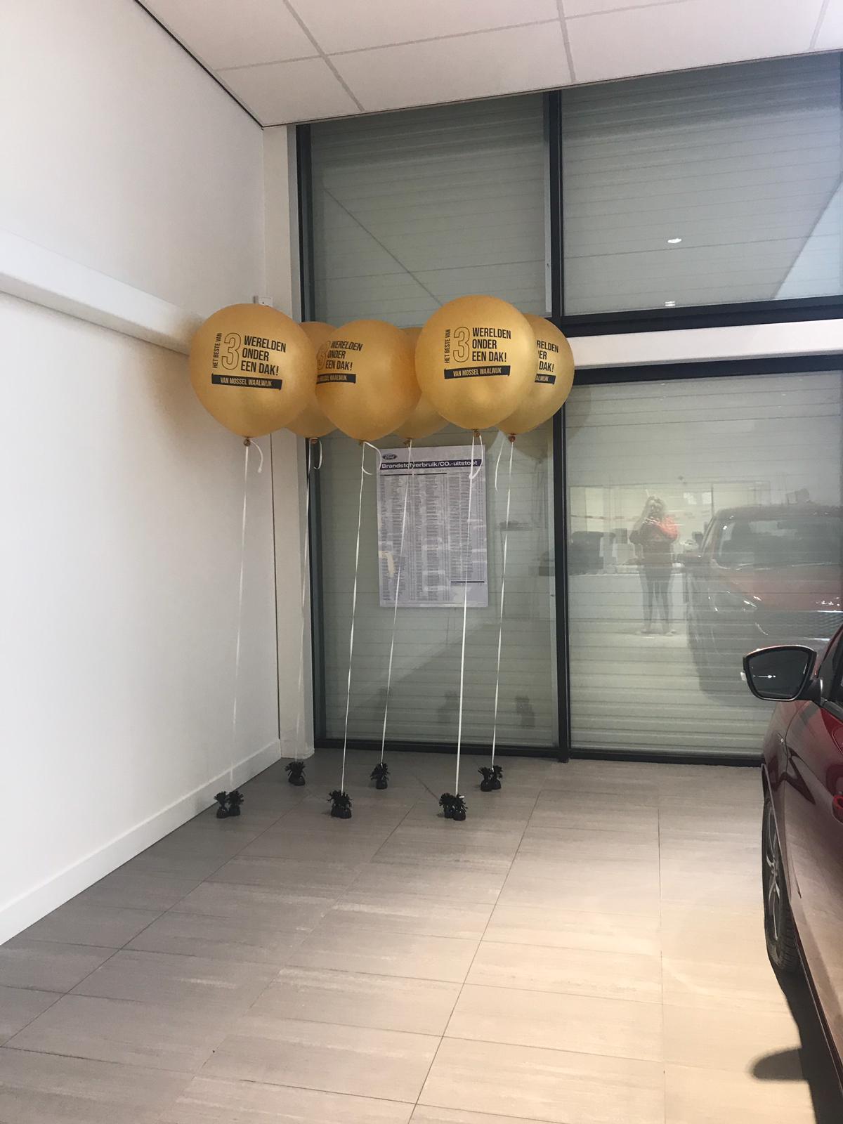 Op zoek naar bedrukte ballonnen met bijvoorbeeld een bedrijfslogo of een speciale tekst? Wij kunnen bedrukte ballonnen op maat leveren. Zowel standaard ballonnen van ong. 30 cm tot mega grote ballonnen. De ballonnen kunnen gevuld worden met helium of bijvoorbeeld gebruikt worden als topballon op een ballonpilaar.